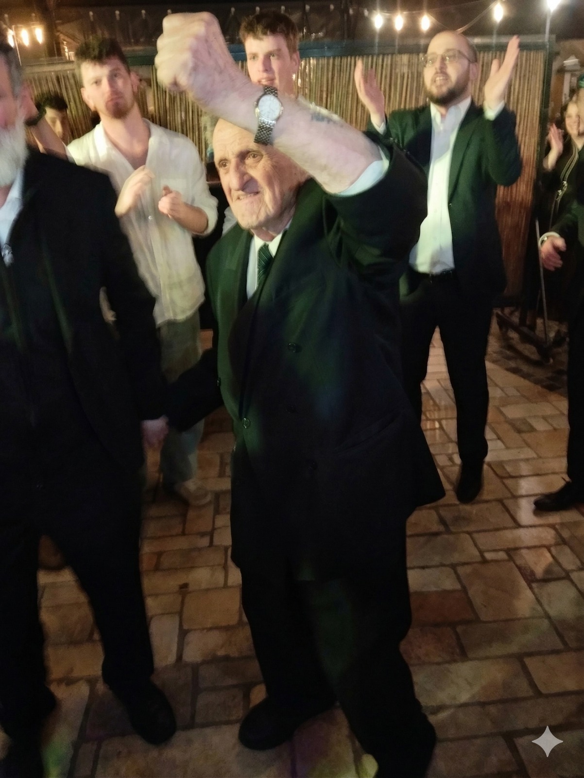 During this period of the Counting of the Omer, we do not hold weddings. But the accompanying photo, taken before Pesach, shows nonagenarian Dov Landau dancing at the wedding of his eighth great-grandson.